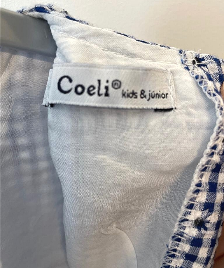 Ein sehr schönes kariertes Kleid von Coeli. Hinten mit Knöpfe und Gurt zum zu binden. Die Größe ist geschätzt 62-68. Sehr guter Zustand.