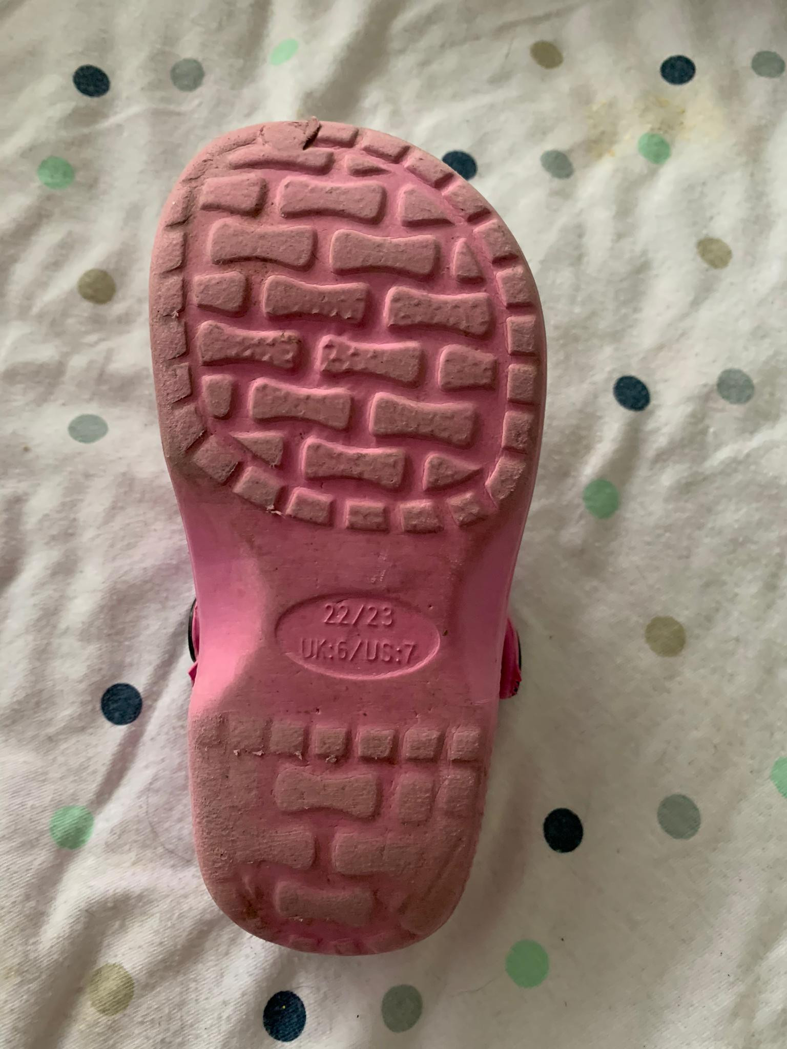 Biete gebrauchte Hausschuhe in der Größe 22/23 an. Gebrauchsspuren vorhanden. Siehe Fotos.
